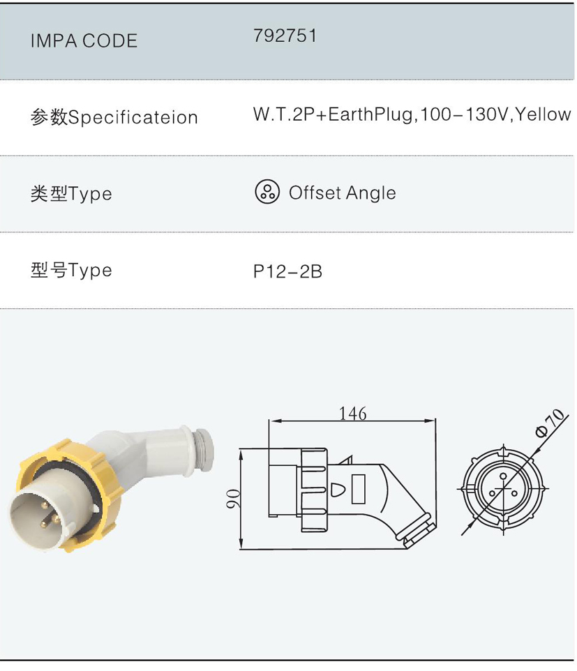 792751 IEC標(biāo)準(zhǔn)防水電源插頭 黃