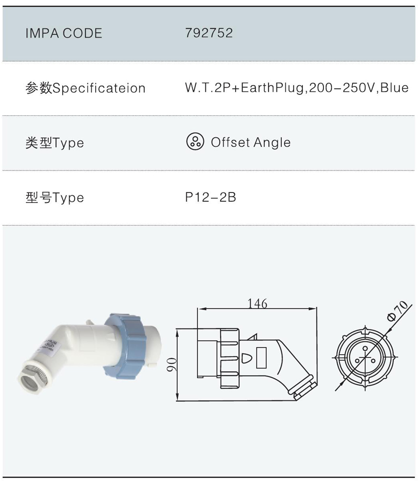 792752 IEC標(biāo)準(zhǔn)防水電源插頭 藍(lán)