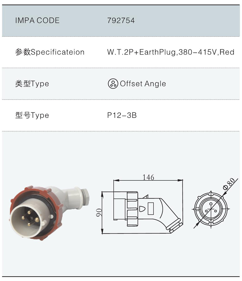 792754 IEC標(biāo)準(zhǔn)防水電源插頭 紅