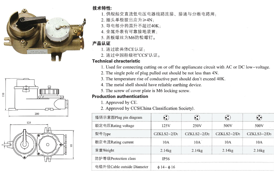 CZKLS2船用銅質(zhì)帶聯(lián)鎖開關(guān)插座