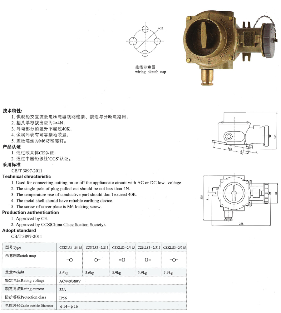 CZKLS3船用大電流帶聯(lián)鎖開關(guān)插座