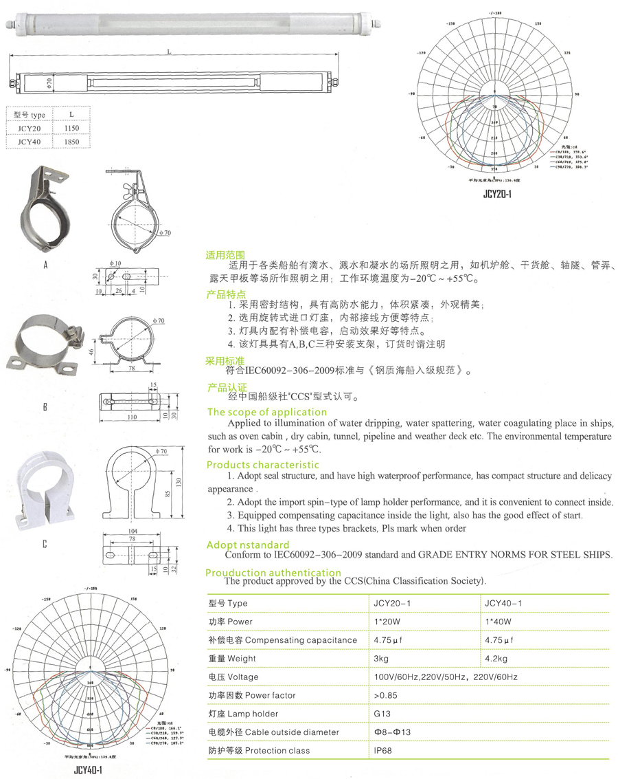 JCY20/JCY40熒光艙頂燈