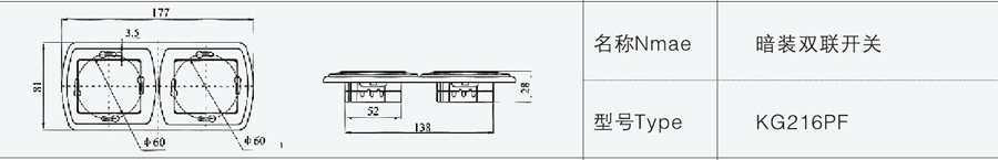 KG216PF暗裝雙聯(lián)開關(guān)