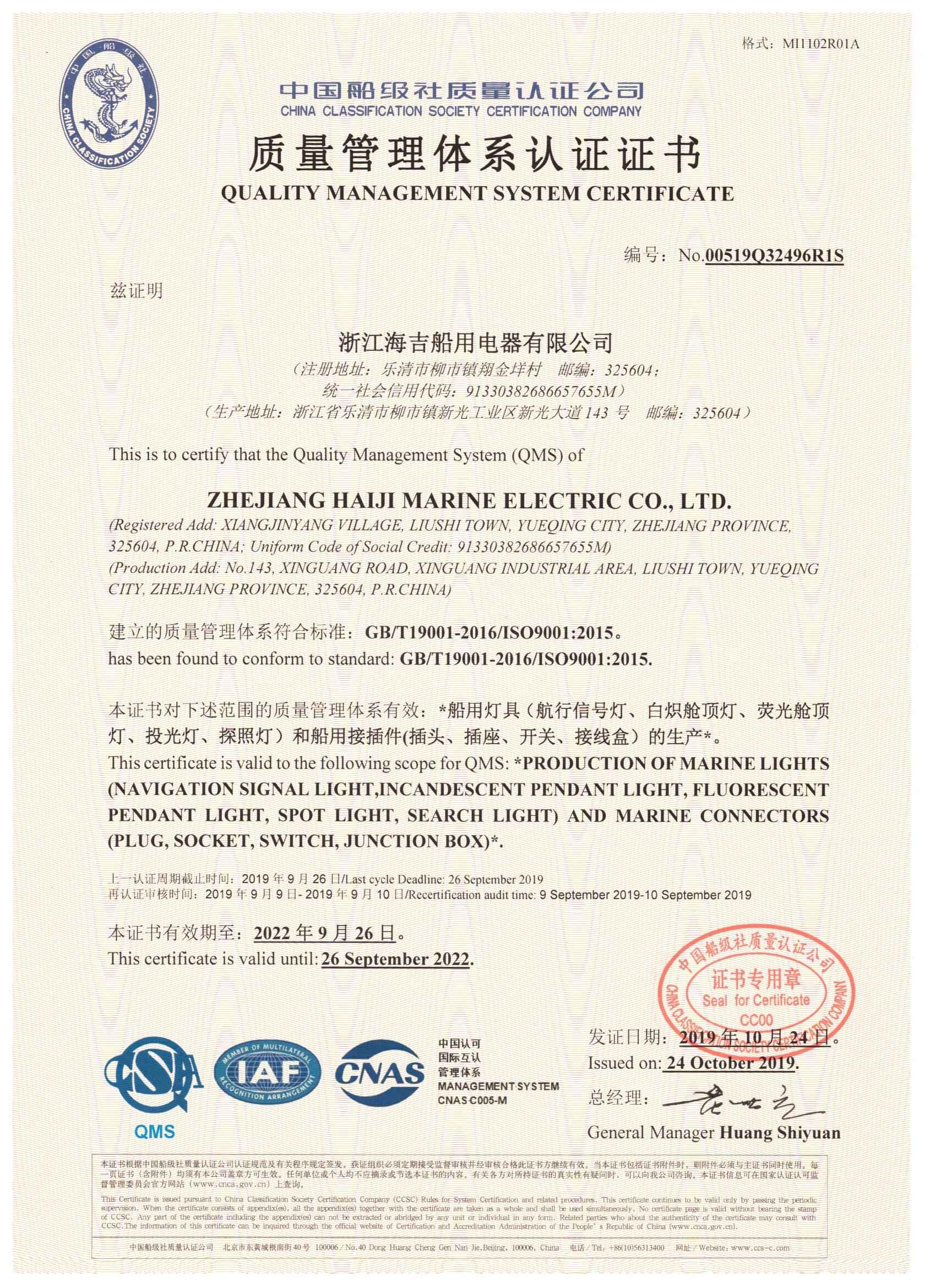 質(zhì)量管理體系認(rèn)證證書