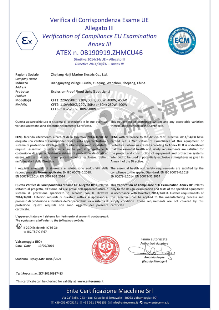 投光燈CE證書