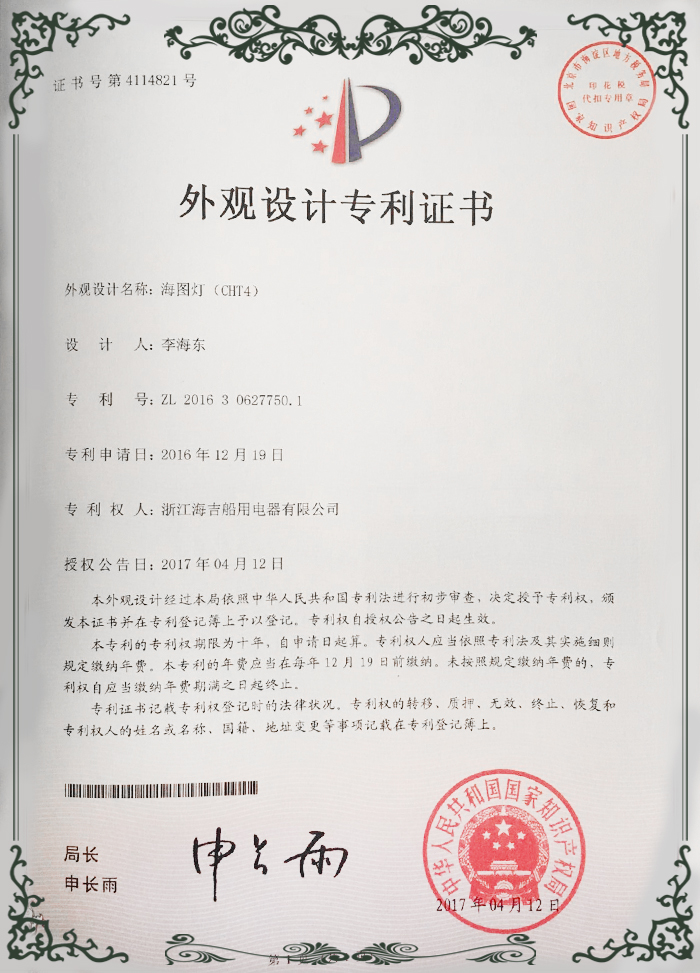 外觀設(shè)計(jì)專利證書4
