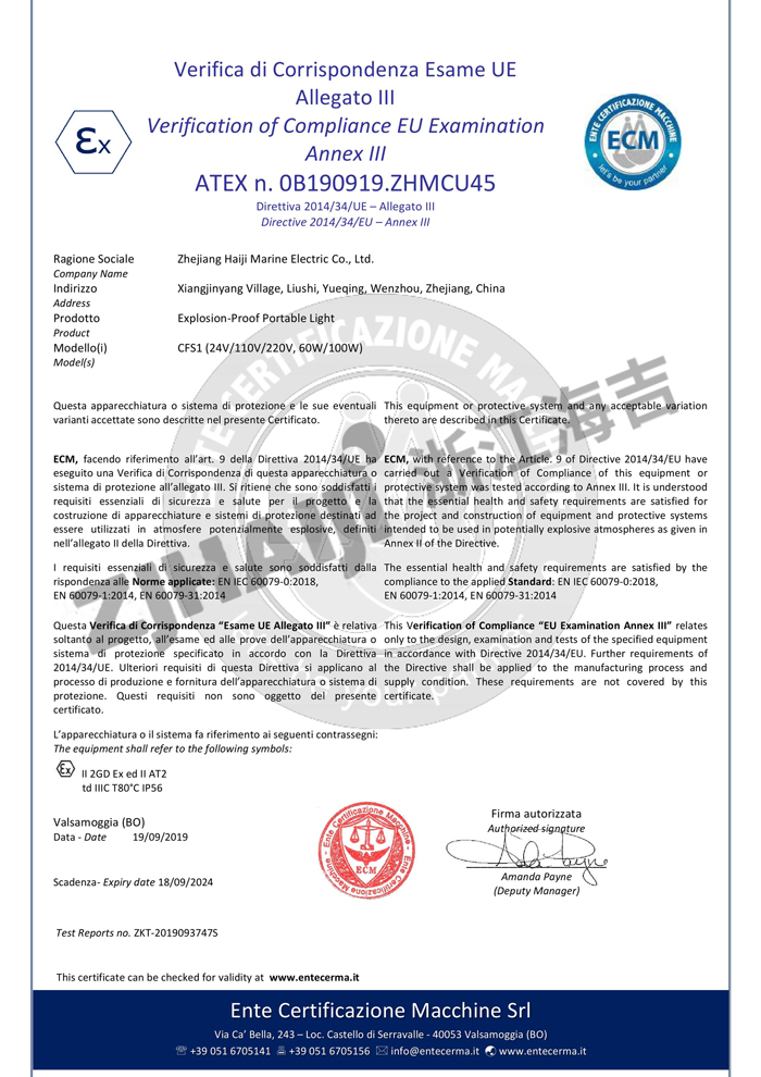 CFS1防爆證書