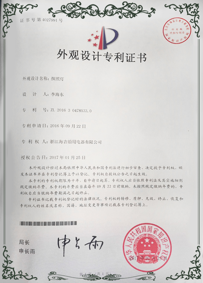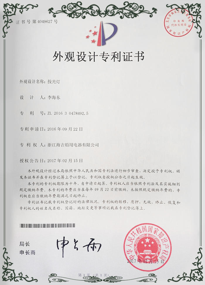 外觀設(shè)計(jì)專利證書1