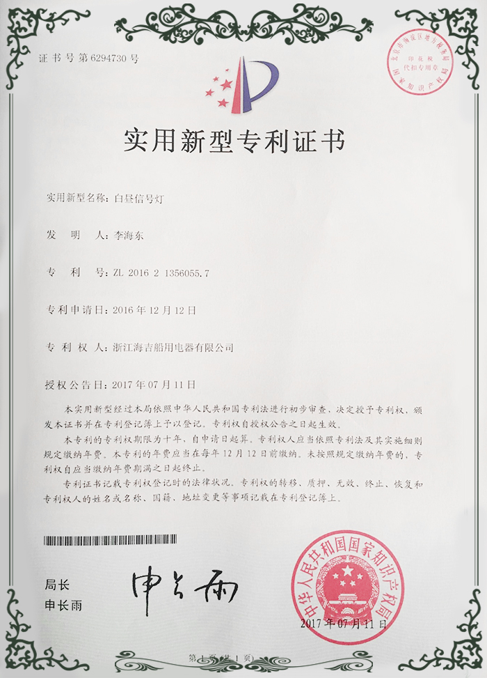 實(shí)用新型專利證書6